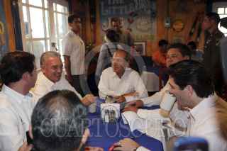 SANTA ROSALIA, BAJA CALIFORNIA SUR, 12OCTUBRE2012.- Marcos Covarrubias Vilaseñor, gobernador del estado, y Felipe Calderón Hinojosa, Presidente de México, se tomaron unos minutos para acudir a tomarse un café en el restaurante "El muelle", en el pueblo de Santa Rosalía. FOTO: ARIEL GUTIÉRREZ /CUARTOSCURO.COM
