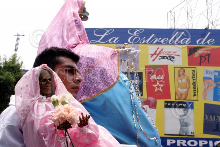 MEXICO, D.F., 15MAYO2005.- Creyentes de la Santa Muerte organizaron una marcha del templo Unico Santuario Nacional ubicado en la colonia Morelos a la residencia oficial de los Pinos, para pedir se les reconozca como una asociación religiosa. FOTO: Moisés Pablo/CUARTOSCURO.COM