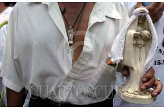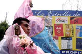 MEXICO, D.F., 15MAYO2005.- Creyentes de la Santa Muerte organizaron una marcha del templo Unico Santuario Nacional ubicado en la colonia Morelos a la residencia oficial de los Pinos, para pedir se les reconozca como una asociación religiosa. FOTO: Moisés Pablo/CUARTOSCURO.COM