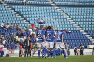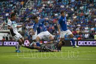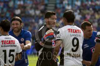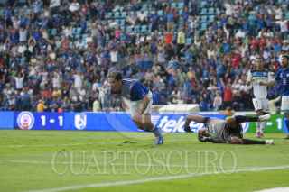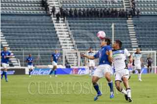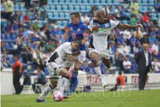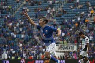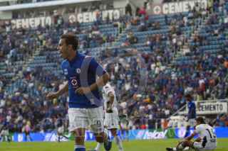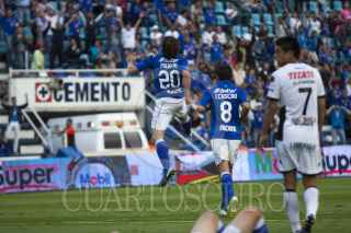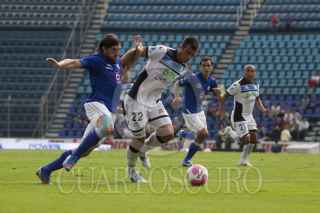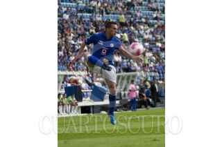 MÉXICO, D.F., 13OCTUBRE2012.- Mariano Pavone anotó el tercer gol de la Máquina del Cruz Azul en el partido que disputaron en contra de los Gallos Blancos del Querétaro, en el Estadio Azul. Los azules se impusieron 3-2, los otros dos tantos los metió Omar Bravo. FOTO: MOISÉS PABLO /CUARTOSCURO.COM