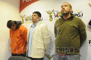 MÉXICO, D.F., 13OCTUBRE2012.- La Procuraduría General de Justicia del DF presentó a tres hombres por el delito de homicidio en contra de un hombre, los hechos ocurrieron en la calle Granada de la colonia Citlalli en Iztapalapa. Uno de ellos fue identificado como el asesor financiero del hoy occiso. FOTO: LUIS CARBAYO /CUARTOSCURO.COM