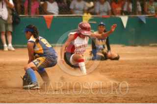 VILLAHERMOSA, TABASCO 15MAYO 2005.- El equipo juvenil femenil de Baja California se impuso 12 carreras contra 9 a sus adversarias de Sinaloa, en la grafica la jugadora de Baja California llega safe en el robo de base en tercera. FOTO: Marco Polo Guzmán Hernández/CUARTOSCURO.COM