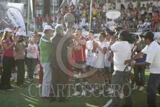 MÉXICO, D.F., 14OCTUBRE2012.-La selección femenil de México en la Homeless World Cup, venció a su similar de Brasíl por seis tantos a dos, mientras que en la rama varonil el Tri perdió el campeonato ante su similar de Chile con 8 tantos por 5 en la edición 2012 de esta copa disputado en el Zócalo de la Ciudad de México. FOTO: JUAN PABLO ZAMORA /CUARTOSCURO.COM