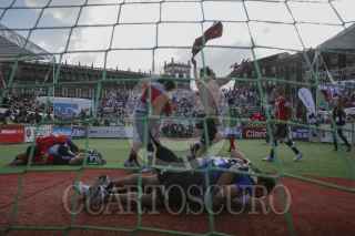 MÉXICO, D.F., 14OCTUBRE2012.-La selección varonil Chilena de la Homeless World Cup, venció a su similar de México por 8-5, mientras que en la rama femenil el Tri alcanzó el campeonato tras propinar una goleada 6-2 a Brasil para adjudicarse el título de la edición 2012 disputado en el Zócalo de la Ciudad de México. FOTO: JUAN PABLO ZAMORA /CUARTOSCURO.COM