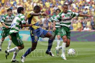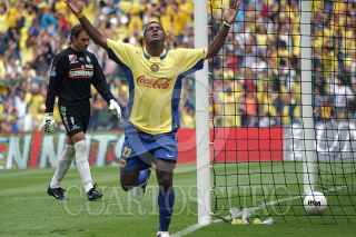 MEXICO, D.F., 15MAYO2005.- Kleber Boas, delantero del América, durante el encuentro con los Santos de Torreón, en el Estadio Azteca. El marcador global fue de 3-3. calificando a las semifinales el equipo americanista por su mejor posición en la tabla general. FOTO: Moisés Pablo/CUARTOSCURO.COM
