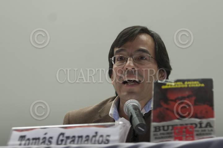 MÉXICO, D.F. 16OCTUBRE2012.- El escritor y periodista, Tomás Segovia, Carlos Díaz, Carmen Aristegui, José Reveles y Tomás Granados hijo del fallecido periodista, Miguel A. Granados Chapa, presentaron el libro de su padre "Manuel Buendía, el primer asesinato de la narcopolitica mexicana" que casi lo termina y su hijo retomó para detallar, la noche de hoy en la libreria Rosario Castellanos ante un auditorio abarrotado. FOTO: FRANCISCO RODRÏGUEZ /CUARTOSCURO.COM