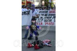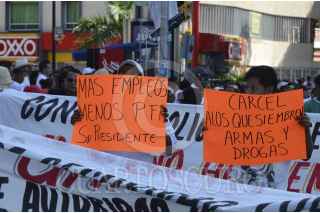 ACAPULCO, GUERRERO 16OCTUBRE2012.- Más de 3800 personas protestaron en la sede de la Policía Federal en Acapulco, contra "los abusos de elementos federales", a los que acusaron de excederse en sus funciones mediante detenciones arbitrarias y tortura de personas inocentes a quienes les plantan armas y drogas. La manifestación se dirigió primero al centro comercial Costera 125, y posteriormente marcharon hacia el zócalo, en el centro de la ciudad, bloqueando ambos sentidos de la Costera Miguel Alemán por casi 3 horas. FOTO: BERNANDINO HERNÁNDEZ /CUARTOSCURO.COM