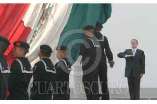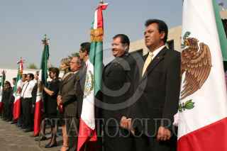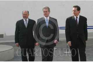MEXICO, D.F. 16MAYO2005.- Jose Paoli Bolio y Santigo Creel, secretario de gobernación a su llegada a la ceremonia de abanderamiento a organizaciones civiles y agrupaciones políticas nacionales. FOTO: Nelly Salas/CUARTOSCURO.COM