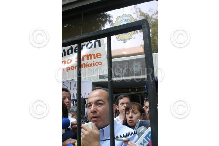 MEXCICO, D.F. 1616MAYO2005.- Protesta a las puertas de la SSP- DF, encabezada por el precandidato a la presidencia de la República, Felipe Calderon Hinojosa y asambleistas del PAN, reclamaron seguridad para los capitalinos. FOTO: Sandra Perdomo/CUARTOSCURO.COM