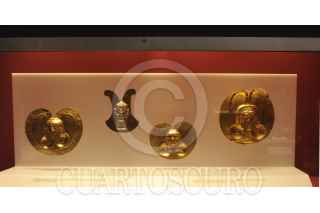 MÉXICO, D.F., 17OCTUBRE2012.- La muestra “Oro, arte prehispánico de Colombia” que se presenta en el Museo Nacional de las Culturas, en el Centro Histórico de la ciudad está integrada por un total de 253 piezas de uso ornamental y religioso provenientes del Museo del Oro del Banco de la República de Colombia. FOTO: GABINO ACEVEDO /CUARTOSCURO.COM