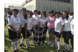 MÉXICO, D.F. 17OCTUBRE2012.- Reporteras de la fuente de la Cámara de Diputados jugaron un partido amistoso con diputadas federales en las canchas de San Lázaro. FOTO: SARA ORTÍZ /CUARTOSCURO.COM