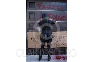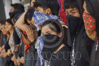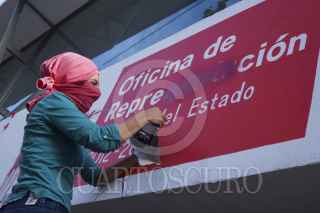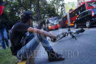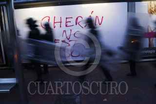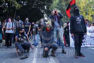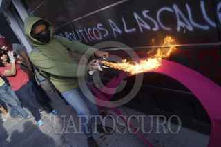 MÉXICO, D.F. 17OCTUBRE2012.- Decenas de personas se manifestaron afuera de la representación del estado de Michoacán, ubicada en la colonia Nápoles, para pedir la liberación de los normalistas detenidos el pasado lunes en ese estado en un desalojo de las Normales. Los inconformes pintaron consignas en el edificio, y se dirigieron hacia la avenida Insurgentes en donde bloquearon la circulación de norte a sur, provocando que las unidades de los metrobuses que viajan por esta arteria bajaran a los pasajeros. Granaderos acudieron al lugar para habilitar el transito por esta concurrida vialidad. FOTO: PEDRO ANZA /CUARTOSCURO.COM