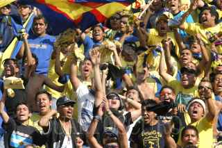 MEXICO, D.F. 22MAYO2005.- Aficionados del América festejan el segundo el tercer gol que su equipo anoto en la porteria del Cruz Azul. FOTO: Nelly Salas/CUARTOSCURO.COM