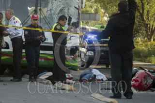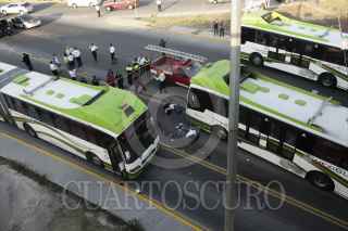ECATEPEC, ESTADO DE MÉXICO, 17OCTUBRE2012.-Dos hombres, perdieron la vida al impactarse la motocicleta en la que viajaban a toda velocidad contra el Mexibus en Av. Central a la altura de la estación Americas en municipio de Ecatepec. FOTO: LUIS CARBAYO /CUARTOSCURO.COM
