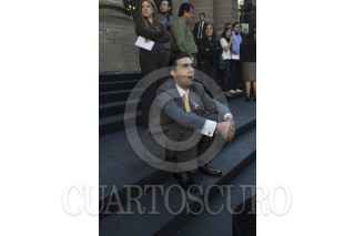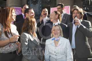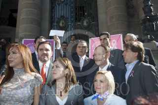 MÉXICO, D.F. 18OCTUBRE2012.- Los asambleístas Jesús Sesma, Miriam Saldaña Cháirez. Federico Döring, Manuel Granados, y Olivia Garza de los Santos, entregaron de un cheque a la Fundación de lucha contra el Cáncer de Mama (FUCAM), por más de 107 mil pesos como donativo de “Un Día de Dieta” contra el cáncer de mama, en las escalinatas de la Asamblea Legislativa. FOTO: MOISÉS PABLO /CUARTOSCURO.COM
