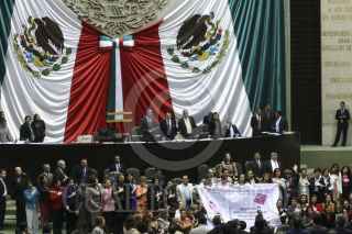 MÉXICO, D.F., 18OCTUBRE2012.- Diputadas de todas los colores partidarios tomaron la tribuna de San Lázaro para concientizar la exploración para la detención oportuna de cáncer de mama. FOTO: IVÁN MENDEZ /CUARTOSCURO.COM