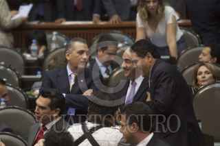MÉXICO, D.F., 18OCTUBRE2012.- Manlio Fabio Beltrones, coordinador de los diputados federales del PRI, Jesús Murillo Karam, presidente de la mesa directiva de la Cámara de Diputados y Silvano Aureoles Conejo, coordinador del los diputados del PRD, durante la sesión en la Cámara de Senadores. FOTO: MOISÉS PABLO /CUARTOSCURO.COM