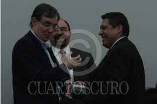 MÉXICO, D.F., 18OCTUBRE2012.- Jose Woldemberg junto a Emilio Alvarez Icaza, secretarío ejecutivo de la Comisión Interamericana de Derechos Humanos (CIDH) junto a Luis Gonzalez Placencia, presidente de la Comisión de Derechos Humanos del Distrito Federal durante la presentacion de la revista especial de DFensor por sus 10 años de creacion. FOTO: ENRIQUE ORDÓÑEZ /CUARTOSCURO.COM