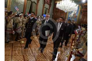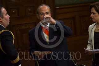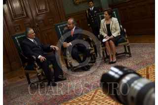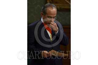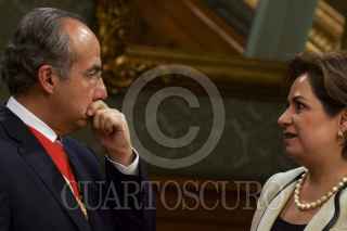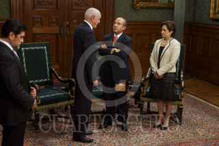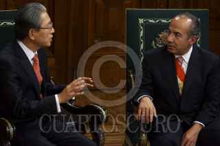 MÉXICO, D.F., 18OCTUBRE2012.- Felipe Calderón Hinojosa, Presidente de México; dialoga con el realizó la ceremonia de Presentación de Cartas Credenciales de Embajadores Residentes. FOTO: ADOLFO VLADIMIR /CUARTOSCURO.COM