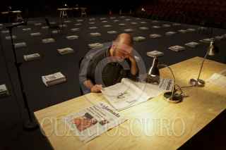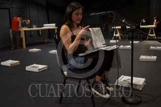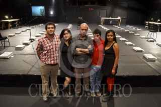 MÉXICO, D.F., 19OCTUBRE2012.- Patricio Villareal Ávila, Karla Rodríguez Lira, Héctor Bourjes, Emanuel Bourjes y Elizabeth Pedroza; integrantes de la compañía Teatro Ojo, presentan el proyecto escénico "Lo que viene". Espacio para dar lugar a repasar el sexenio que termina, para recordar los últimos seis años, para que la gente participe contando su historia, lo que quiere decir, hablar, escuchar, leer y así construir una memoria pública. Este ejercicio de memoria tiene lugar en el teatro el Galeón del Centro Cultural del Bosque, los lunes, jueves y viernes de 12:00 a 21:00 hasta el 09 de noviembre. FOTO: ADOLFO VLADIMIR /CUARTOSCURO.COM