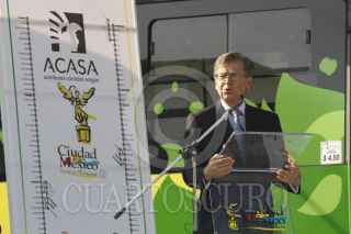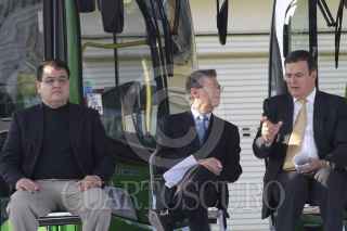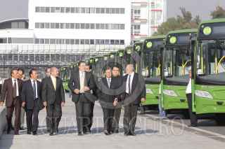 MÉXICO, D.F., 19OCTUBRE2012.- Transportistas del Distrito Federal se manifestaron en un evento en donde firmo un convenio con Nafinsa, los chóferes exigieron una tarifa justa. El Jefe de Gobierno le dió el banderazo a 90 autobuses que circularan del Deportivo Oceanía a el metro Chapultepec, en el Autodromo Hermanos Rodríguez. FOTO: MOISÉS PABLO /CUARTOSCURO.COM