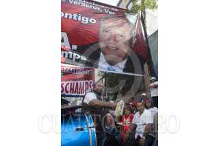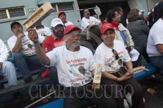 MÉXICO, D.F., 20OCTUBRE2012.- Cientos de trabajadores petroleros esperan afuera de su sede sindical luego que en el interior se realiza a puerta cerrada la 25 Convención Ordinaria del Sindicato de Trabajadores Petroleros de la República Mexicana la cual inició este sábado para reelegir al actual senador Carlos Romero Deschamps como líder del gremio por otros seis años quien es líder de ese sindicato desde 1997. FOTO: RODOLFO ANGULO /CUARTOSCURO.COM
