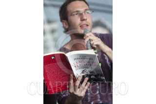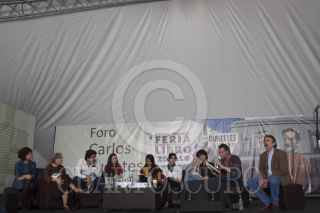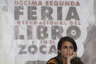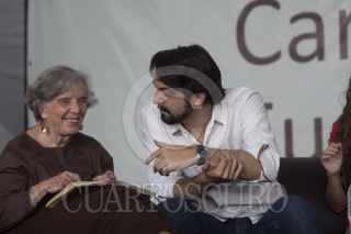 MÉXICO, D.F., 20OCTUBRE2012.- En la carpa Carlos Fuentes de la Décima Segunda Feria Internacional del Libro en el Zócalo se realizó una lectura colectiva del libro "La Noche de Tlaltelolco", de la escritora Elena Poniatowska, participaron jóvenes integrantes del #Yosoy132 y la autora. FOTO: MOISÉS PABLO /CUARTOSCURO.COM