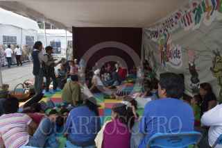 MÉXICO, D.F., 20OCTUBRE2012.- Padres de familias y niños disfrutan de las actividades de la Décima Segunda Feria Internacional del Libro en el Zócalo, en su segundo día de actividades. Los asistentes aprovechan la gran oferta literaria de este encuentro que ofrece talleres, lecturas colectivas, teatro, música, y sobre todo momentos familiares que estimulan la lectura entre sus integrantes. FOTO: MOISÉS PABLO /CUARTOSCURO.COM