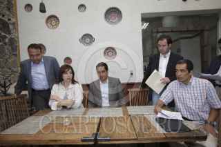 MÉXICO, D.F., 21OCTUBRE2012.- Panistas agremiados en el movimiento 'En Causa' demandaron al presidente del Consejo Ejecutivo Nacional del PAN, Gustavo Madero, no expedir la convocatoria para la elección de su presidente y renovación de Comité Directivo Regional del Distrito Federal. Encabezados por el exdirigente del PAN en el DF, Carlos Gelista, dijo que la solicitud se hace para impedir que se consolide “el monopolio del poder en manos de una pequeña casta privilegiada de jóvenes encabezados por Mariana Gómez del Campo y Jorge Romero. Gelista fué acompañado de los panista Bernardo Lartigue, Jorge Triana, Gabriela Salido, Carlos Pizano y Omar Pacheco. FOTO: JUAN PABLO ZAMORA /CUARTOSCURO.COM