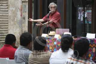 OAXACA, OAXACA., 21OCTUBRE2012.- El geólogo y profesor de la Universidad de Indiana en los Estados Unidos, dictó una conferencia en el Centro Académico y Cultural San Pablo en la ciudad de Oaxaca en la que explicó la teoría de las placas tectónicas, el surgimiento de volcanes, cordilleras y terremotos, además aseveró que los últimos terremotos que ha ocurrido en América Latina se han debido principalmente a que la Placa de Nazca, sobre la cual están posicionada América Latina, se esta introduciendo de bajo del continente. FOTO: ARTURO PÉREZ ALFONSO /CUARTOSCURO.COM
