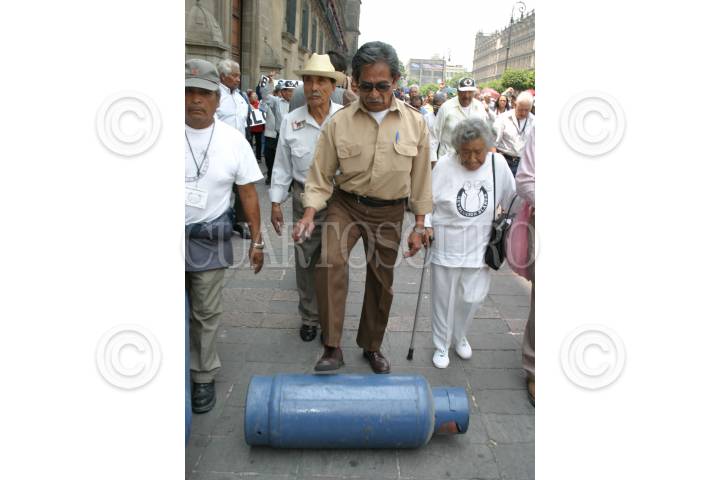 MEXICO, D.F. 23MAYO2005.- Un grupo de personas de la tercera edad se manifestaron a las puertas de Palacio Nacional para mostrar su incoformidad por el aumento del gas LP cada mes. FOTO: Nelly Salas/CUARTOSCURO.COM