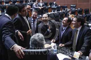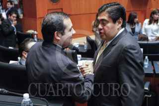 MÉXICO, D.F., 23OCTUBRE2012.- Los senadores; Javier Lozano, Miguel Barbosa, Francisco Domínguez Servien, José Rosas Aispuro Torres, Roberto Gil Zuarth, Ernesto Cordero, y Armando Ríos Piter, durante la sesión en la cual se discute la Reforma Laboral. FOTO: IVÁN MENDEZ /CUARTOSCURO.COM