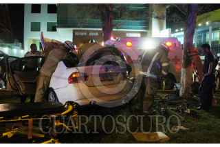 CANCUN, QUINTANA ROO 22OCTUBRE2012.- Accidente de Luis Gerardo Venegas Jugador de Atlante cuando transitaba abordo de su BMW en la av Bonampak de Cancún, y con un saldo de 4 heridos mas. FOTO: CSPHOTO /CUARTOSCURO.COM