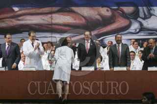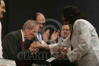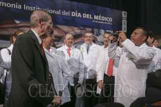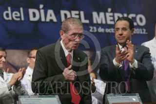 MÉXICO, D.F., 23OCTUBRE2012.- Jesús Kumate, médico cirujano egresado de la Escuela Médico Militar en 1946, y doctor en Ciencias por la Escuela Nacional de Ciencias Biológicas del Instituto Politécnico Nacional. Se ha especializado en investigación en infectología pediátrica y ha ejercido como catedrático en la Escuela Médico Militar, en la Facultad de Medicina de la Universidad Nacional Autónoma de México y en la Escuela Nacional de Ciencias Biológicas del Instituto Politécnico Nacional. Es autor de Manual de Infectología (1973-2001), La salud de los mexicanos y la medicina en México (1977), Salud para todos. ¿Utopía o realidad? (1989), La ciencia en la Revolución francesa (1991); Investigación clínica, Cenicienta y Ave Fénix (1987, 1995), El cólera (1993), Sistemas Nacionales de Salud en las Américas (1994) e Italia en la Medicina (1997), entre otros libros y artículos científicos. Durante la ceremonia institucional del Día del Médico en el auditorio del Centro Médico. FOTO: JUAN PABLO ZAMORA /CUARTOSCURO.COM