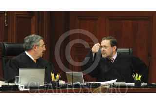 MÉXICO, D.F., 23OCTUBRE2012.- Los ministros Luis María Aguilar Morales y Jorge Mario Pardo Rebolledo, en la sesión de la Suprema Corte de Justicia de la Nación. FOTO: CUARTOSCURO.COM