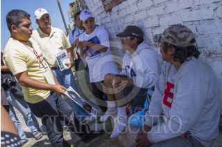 IRAPUATO, GUANAJUATO 23OCTUBRE2012.- Ruben Figueroa, miembro del Movimiento Migrante Mesoamericano y Fray Tomás Gónzalez, director del albergue para migrantes La 72 de Tenosique buscan en información con los migrantes que deambulan las vías del tren de Irapuato para localizar a sus conacionales desaparecidos. FOTO: MOYSÉS ZÚÑIGA SANTIAGO /CUARTOSCURO.COM