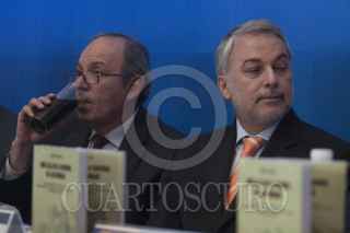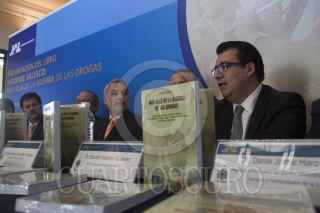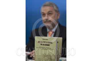 MÉXICO, D.F., 24OCTUBRE2012.- Héctor Aguilar Camín, y Emilio Márquez, gobernador de Jalisco, durante la presentación del Informe Jalisco: Más allá de la guerra de las drogas, en la casa-representación del estado. FOTO: MOISÉS PABLO /CUARTOSCURO.COM