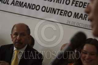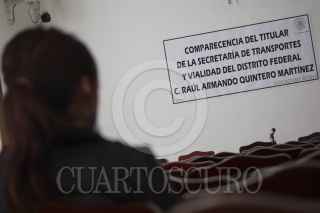 MÉXICO, D.F., 24OCTUBRE2012.- El Secretario de Transportes y Vialidad del Distrito Federal, Raúl Armando Quintero, escucha atento la intervención de la asambleista del PT, Miriam Saldaña Cháirez, durante su comparecencia ante la asamblea legislativa. FOTO: PEDRO ANZA /CUARTOSCURO.COM