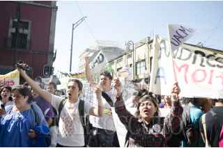 MÉXICO, D.F., 25OCTUBRE2012.- Estudiantes, maestros y administrativos de los cinco planteles de la Universidad Nacional Autónoma de la Ciudad de México UACM marcharon para exigir que se retomen las clases. El contingente partió del Palacio de Bellas Artes, e hicieron una parada en la Asamblea Legislativa en donde colocaron una corona de flores en representación de la perdida del semestre, según lo señalaron. Esta casa de estudios permanece sin actividades escolares desde el 28 de agosto por un conflicto en la elección de su consejo universitario. FOTO: SANDRA PÉREZ /CUARTOSCURO.COM