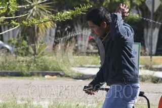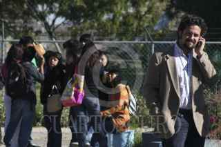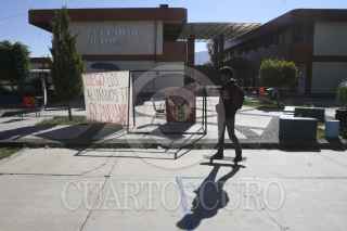 OAXACA, OAXACA, 25OCTUBRE2012.- Alumnos e integrantes del Consejo Técnico de la Facultad de Idiomas tomaron las instalaciones de esta escuela perteneciente a la Universidad Autónoma Benito Juárez de Oaxaca (UABJO) para exigir la cancelación del proceso de renovación del consejo así como la salida de Diego González Algara, director de la facultad y a su vez el reconocimiento de Rufino Vásquez Manuel. En la gráfica González Algara observa la toma de la escuela. FOTO: ARTURO PÉREZ ALFONSO /CUARTOSCURO.COM