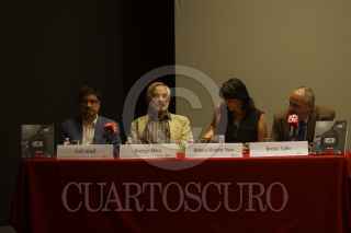 MÉXICO, D.F., 25OCTUBRE2012.- Esta noche en el Fondo de Cultura Económica se presentó el libro "Nacho López. Ideas y Visualidad", editado por José Antonio Rodríguez y Alberto Tovalín Ahumada, al acto acudieron como presentadores: el fotógrafo, Rodrigo Moya, los historiadores Rebeca Monroy Nasr y Ariel Arnal, así como también el escritor Benito Taibo. FOTO: PEDRO ANZA /CUARTOSCURO.COM