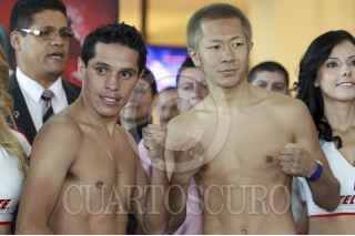 MÉXICO, D.F., 26OCTUBRE2012.- Se realizó la ceremonia de pesaje de los boxeadores Edagr Sosa y Myung Lee (Japón), previó a su pelea de este sábado en la Arena Ciudad de México. FOTO: IVÁN MENDEZ /CUARTOSCURO.COM