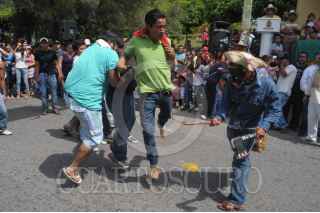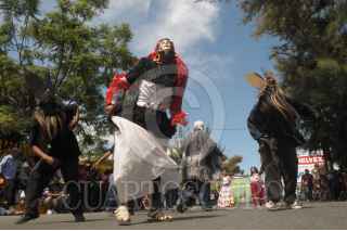CHILPANCINGO, GUERRERO, 27OCTUBRE2012.- La conmemoración del 163 aniversario de la Erección del Estado de Guerrero se celebró este día en Chilpancingo con un fandango guerrerense, en el que desfilaron por la avenida principal diversas bandas de música y carros alegóricos que encabezaron a más de un centenar de bailes y danzas regionales de los 81 municipios, de las siete regiones. Los contingentes desfilaron de la alameda a la plaza Primer Congreso de Anáhuac de la capital del estado, la que se pintó de colores por la participación de danzas como la de Los Tlacololeros, Los Diablos, Los Moros Cabezones, Los Mudos, Los 12 Nones, Los Pescados, Los Aztecas, Los Mecos, Los Moros, Espueleros, Gachupines, Los Maizos, Los Machos, Del Torito, De Tecuani Viejo, Los Tecuanes, De Tres Potencias, De Las Mionas, De Los Diablos y de Los Diablos, de las diferentes regiones de la entidad. Desde el presídium el Secretario General de Gobierno, Humberto Salgado Gómez, en representación del gobernador Ángel Aguirre Rivero; el presidente municipal, Mario Moreno Arcos; la Secretaria de Educación en la entidad, Silvia Romero Suárez, y la directora del Instituto Guerrerense de la Cultura, Alejandra Frausto Guerrero, entre otros funcionarios, aplaudieron y disfrutaron de la participación de cada uno de los contingentes, quienes pusieron su máximo esfuerzo para demostrar a los guerrerenses y turistas nuestras tradiciones. FOTO: BERNANDINO HERNÁNDEZ /CUARTOSCURO.COM