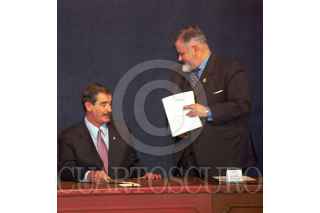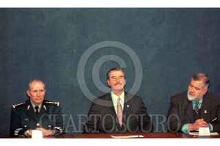 El presidente de la República Vicente Fox, ofreció hoy, el Informe sobre las Políticas y Alcances Obtenidos en Materia de Derechos Humanos, en la Residencia Oficial de Los Pinos. Al acto lo acompaño Ricardo Gerardo Vega García, secretario de la Defensa Nacional, y Jose Luis Soberanes, presidente de la Comición Nacional de Derechos Humanos. FOTO:Eunice Adorno/CUARTOSCURO.COM
