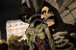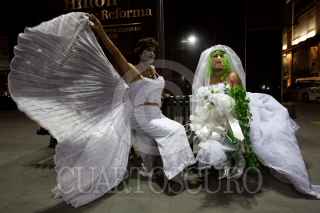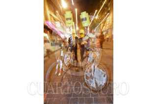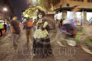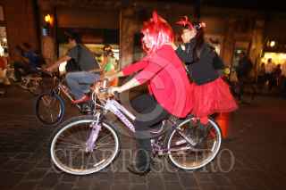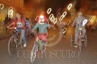 MÉXICO, D.F. 27OCTUBRE2012.- Esta noche se realizó el último paseo nocturno del año denominado "Noche de Muertos en Bicicleta", comenzando a las 19:00 en calles del Centro Histórico. Disfraces en bicicleta, patines, caminando o en cualquier vehículo no motorizado, los asistentes recorrieron un circuito de seis kilómetros en las calles Balderas, Juárez, López, Artículos 123, Venustiano Carranza, Jesús María, Loreto, San Ildefonso, Correo Mayor, Corregidora, 16 de Septiembre, Isabel La Católica, Tacuba y Avenida Hidalgo. Los asistentes participaron también en el Tercer Concurso de Disfraces alusivos a la Noche de Muertos llevado a cabo en Plaza Tolsá. FOTO: JUAN PABLO ZAMORA /CUARTOSCURO.COM