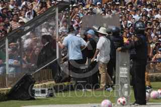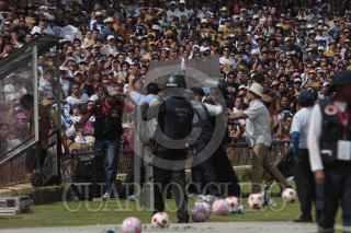 MÉXICO, D.F., 28OCTUBRE2012.- Mario Carrillo, director de los Pumas de la UNAM a su salida tuvo que ser custodiado por granaderos ya que la aficion le comenzo a arrojar objetos. FOTO: ENRIQUE ORDÓÑEZ /CUARTOSCURO.COM
