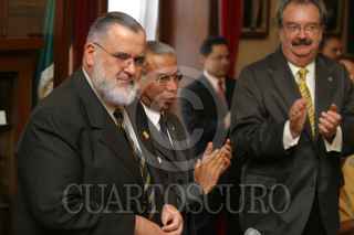 MEXICO, D.F. 25MAYO2005.- Miguel Sadot Sánchez, presidente de la comisión de Derechos Humanos del Senado, José Luis Soberanes, presidente de la CNDH y el director de la Facultad de Derecho de la UNAM, Fernando Serrano Magallón, firmaron un acuerdo para realizar el 2ndo diplomado en Derechos Humanos. FOTO: Sandra Perdomo/CUARTOSCURO.COM