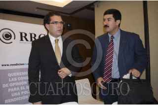 MÉXICO, D.F., 29OCTUBRE2012.- Jorge Javier Romero miembro de la Red por la Rendición de Cuentas y Armando Ríos Piter del PRD, durante el Foro "Participación ciudadana y la rendición de cuentas . Una iniciativa desde Chihuahua" donde se analizó la Ley de la Participación Ciudadana tema fundamental para la Red por la Rendición de Cuentas donde se menciona que la participación ciudadana no ha sido tomada en cuenta, además esta iniciativa toma relevancia en el contexto de la situación de violencia que se vive en este estado. Se realizó en el salón Mozart del hotel Emporio Reforma. FOTO: SANDRA PÉREZ /CUARTOSCURO.COM