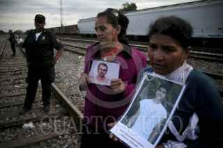 TIERRA BLANCA, VERACRUZ., 29OCTUBRE2012.- La Caravana Liberando la Esperanza, donde se trasladan 38 madres centroamericanas en búsqueda de sus hijos migrantes, arribó a la ciudad de Tierra Blanca uno de los principales focos rojos para el flujo migratorio. Las angustiadas madres acudieron a las vías del ferrocarril en donde le preguntaron a los migrantes si habían visto a sus hijos. FOTO: FÉLIX MÁRQUEZ /CUARTOSCURO.COM