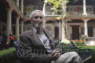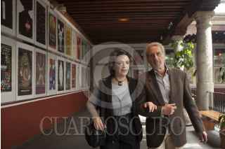 MÉXICO, D.F., 30OCTUBRE2012.- El diseñador gráfico, pionero de la disciplina en México por casi 60 años, recibió la medalla "José Guadalupe Posada" la mañana de hoy en el Museo Franz Mayer en el marco del XII Bienal del Diseño Gráfico, lo acompañó su esposa Barbara Jacobs. FOTO: FRANCISCO RODRÍGUEZ /CUARTOSCURO.COM